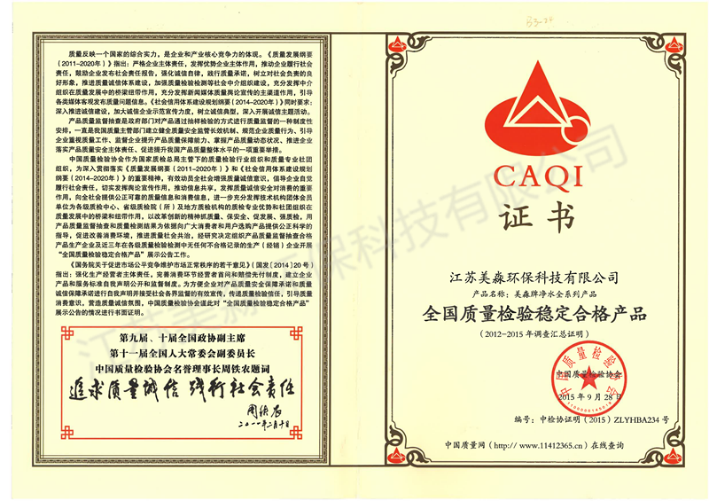 2015年全國質(zhì)量檢驗(yàn)穩(wěn)定合格產(chǎn)品