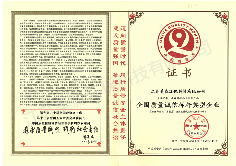 2015年全國質(zhì)量誠信標(biāo)桿典型企業(yè)