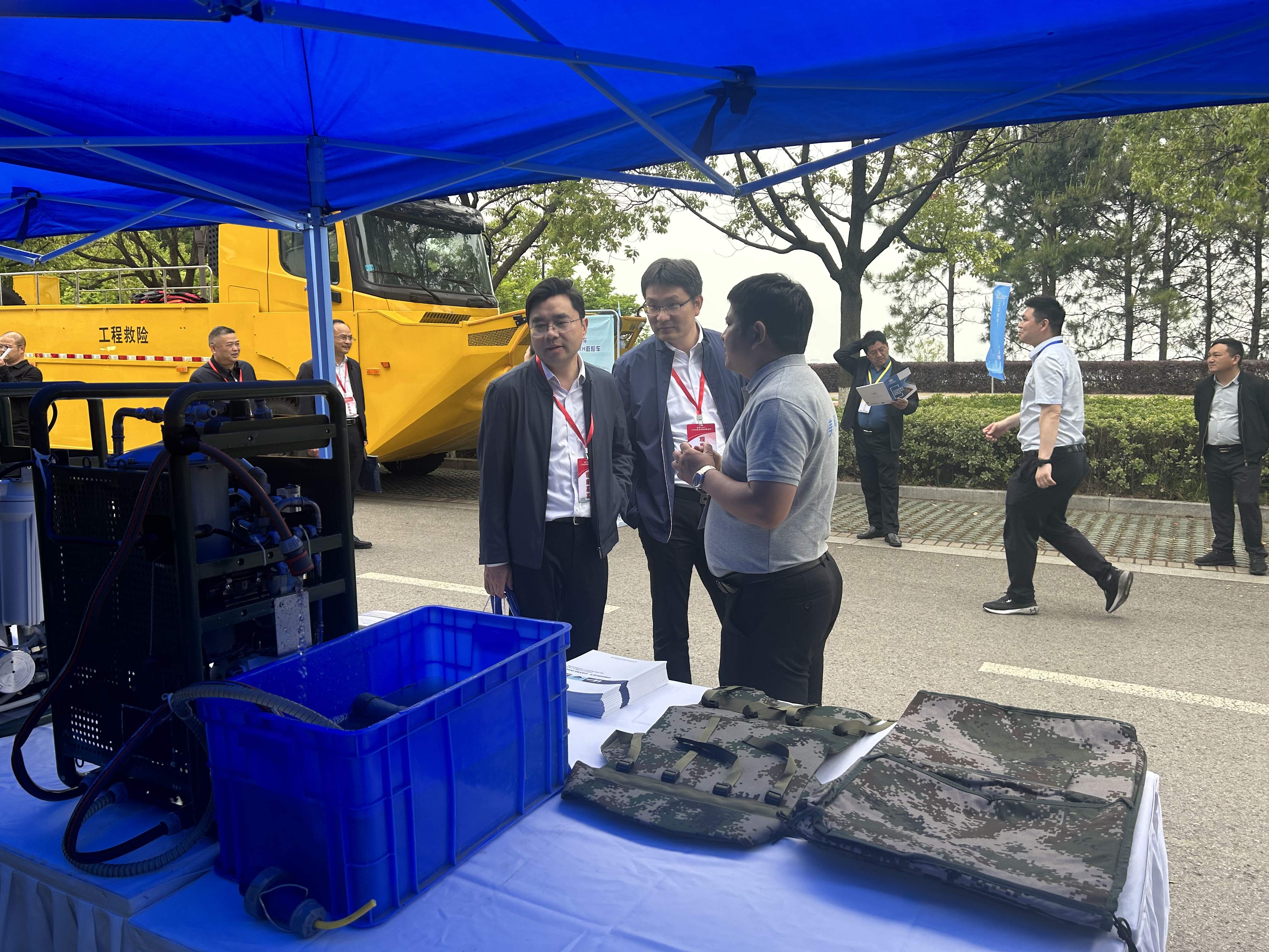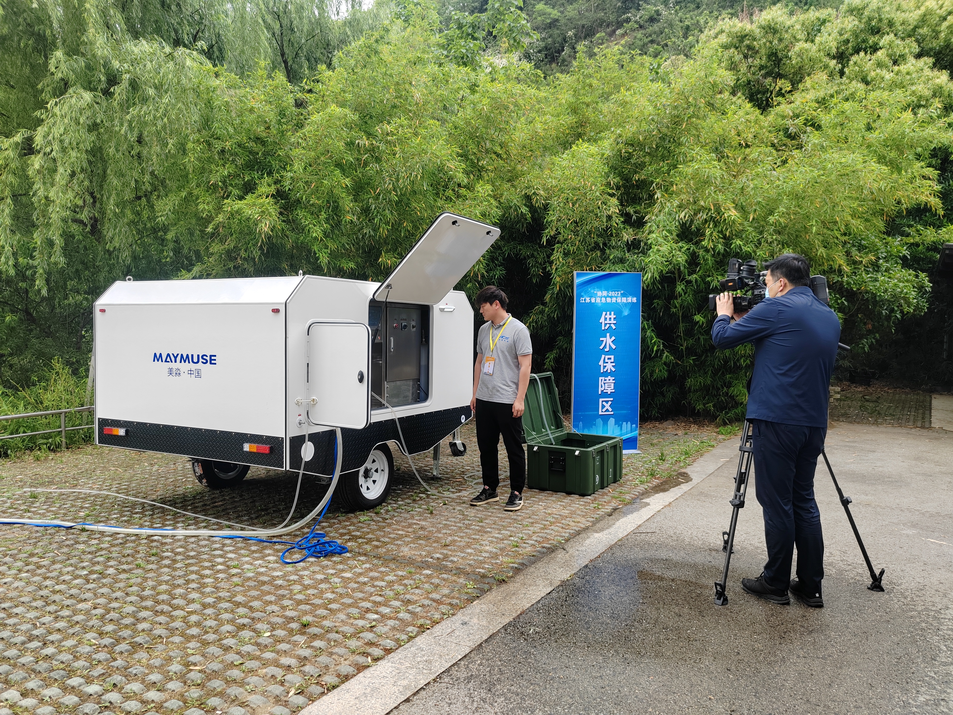 演練現場,美淼環保應急供水保障車,作為應急供水保障裝備,保障人民的飲水安全,在演練中發揮產品優勢。該產品采用美淼新型石墨烯膜電容電吸附核心技術和承壓陶瓷膜過濾技術,污染物去除效率高,通過高效水凈化可滿足500-1500人的生活和飲水需求;拖車結構可適應各種復雜路況,環境適應性強;廣泛應用于環境惡劣,自然水質差等多地域及環境下,也適應應急救援,分布式地區水電保障、軍隊作戰、地質勘探、石油開采等場景;光伏+市電+自備發電混合動力模式,保證系統水電聯供的持續運行,滿足不同地區、不同狀況下供水和供電的應急需求;集成控制模塊適應不同工藝自由組合;自動化控制,可輕松實現無人值守。