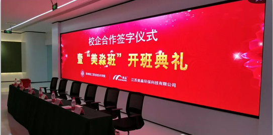 近日,由常州科教城教育培訓處領導、美淼中高層管理人員、學院及校企合作處、二級學院領導老師以及“美淼班”全體學生共同參與的常州輕院與江蘇美淼校企合作簽約儀式,暨“美淼班”開班典禮如期于美淼大廈2樓展廳內舉行。